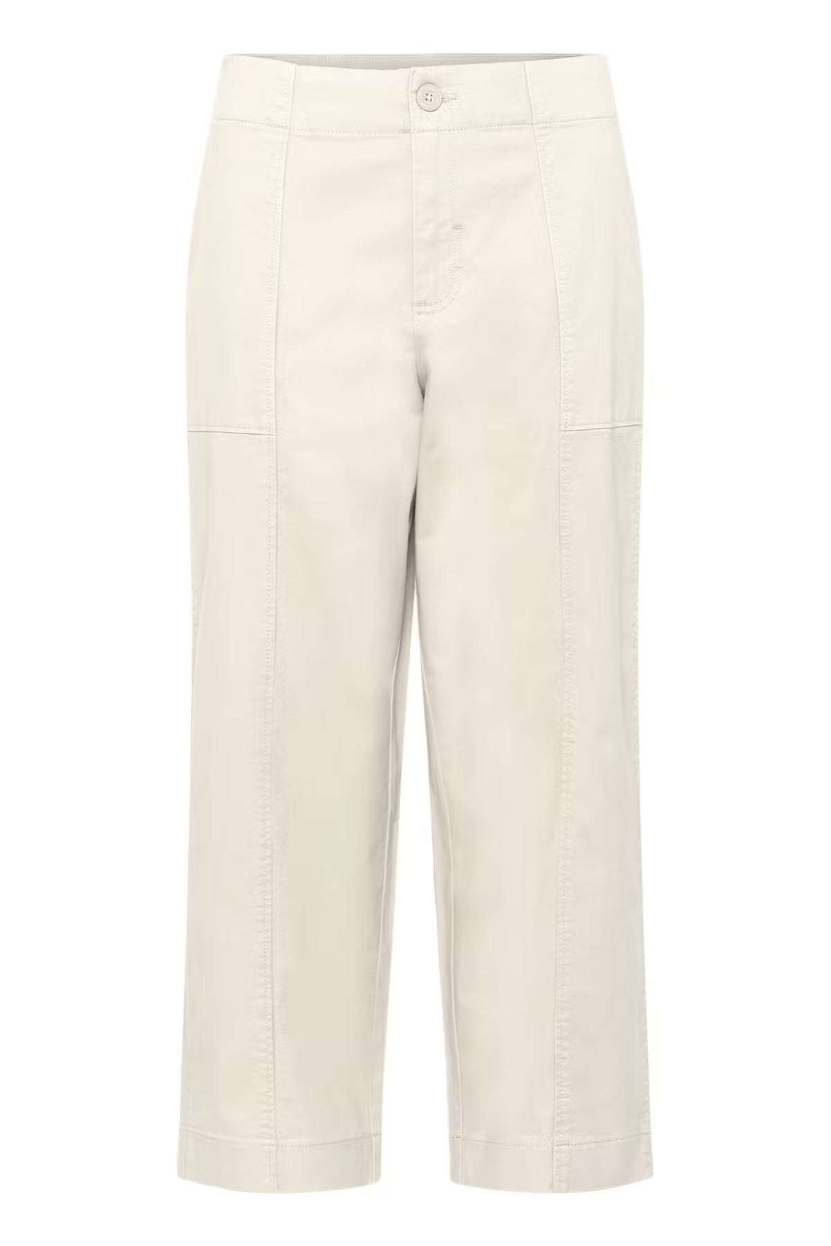 These relaxed trousers in a light cotton blend feature a cropped length and a loose fit for all-day comfort. Visible seams and front patch pockets highlight the simple, functional design. Perfect paired with a T-shirt and flat shoes for everyday wear.