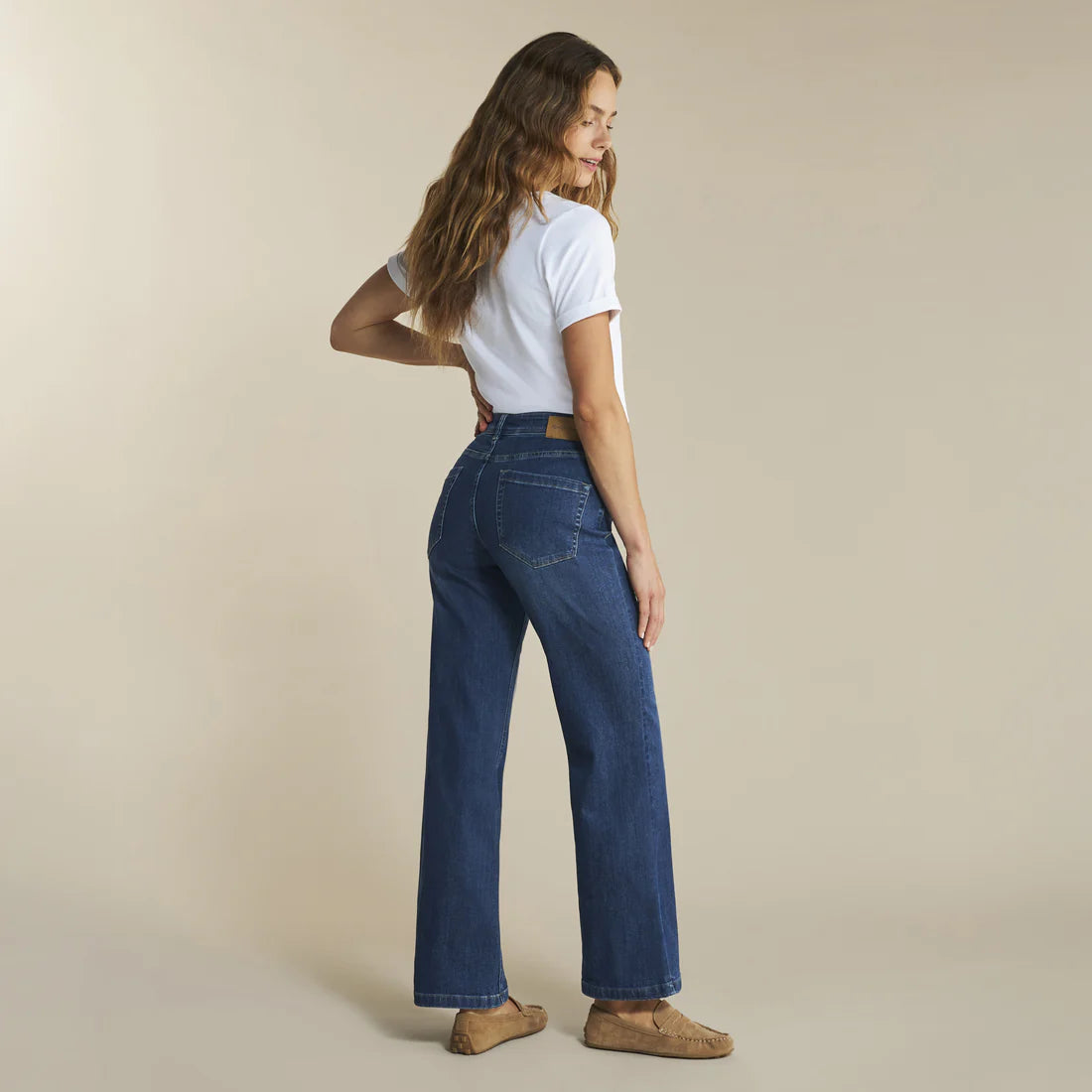 The Colette 5 Pocket Jeans in Dark Stone by Red Button feature a flattering high-rise waist and a relaxed wide-leg fit for a chic, effortless look. The versatile design is perfect for both casual daytime outings and dressy evenings. Pair with a tucked-in blouse or oversized knit for a stylish, laid-back vibe.